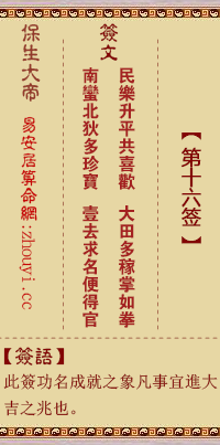 若问功名、前有贵人。更添喜气、财禄丰盈。民生乐利、五谷丰收。福寿无限、财利有余。讼能自改、病可立除。诸神保护、安步当车。