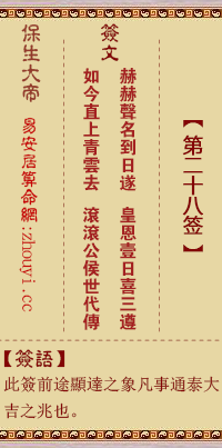 一条大路、可向前行。诸事如心、顺利吉昌。威名显赫、传遍千里。家族世代、沐浴皇恩。功德事业、蒸蒸日上。诸般吉事、皆大欢喜。
