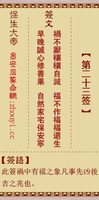 天地宇宙之间,积善之家必有余庆;积恶之家必有余殃。祸福之间,在于平时言行之表现,必须积善果,自然家宅保安宁。