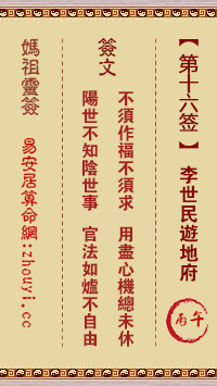 重要关键字句解说:当受害人死后,若在阴间还可以伸冤,以此讨回公道。若没有伸冤者,在未来世,双方相逢时,也会立场对调,而使因果打平。因此,凡事抽得本签者,这都代表有看不见的冤亲债主作怪,或当前的合伙人本身就是冤亲债主.........